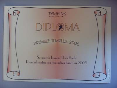 In data de 14 decembrie a avut loc Gala Premiilor Templus in cadrul evenimentului "Solutii de finantari, produse si servicii pentru IMM", eveniment la care au participat principalii reprezentanti din domeniul financiar - bancar alaturi de micii intreprinzatori. Cu acest prilej au fost acordate o serie de premii pentru a recompensa activitatea desfasurata de banci in anul 2006, pentru a veni in intampinarea nevoilor financiare ale IMM-urilor.